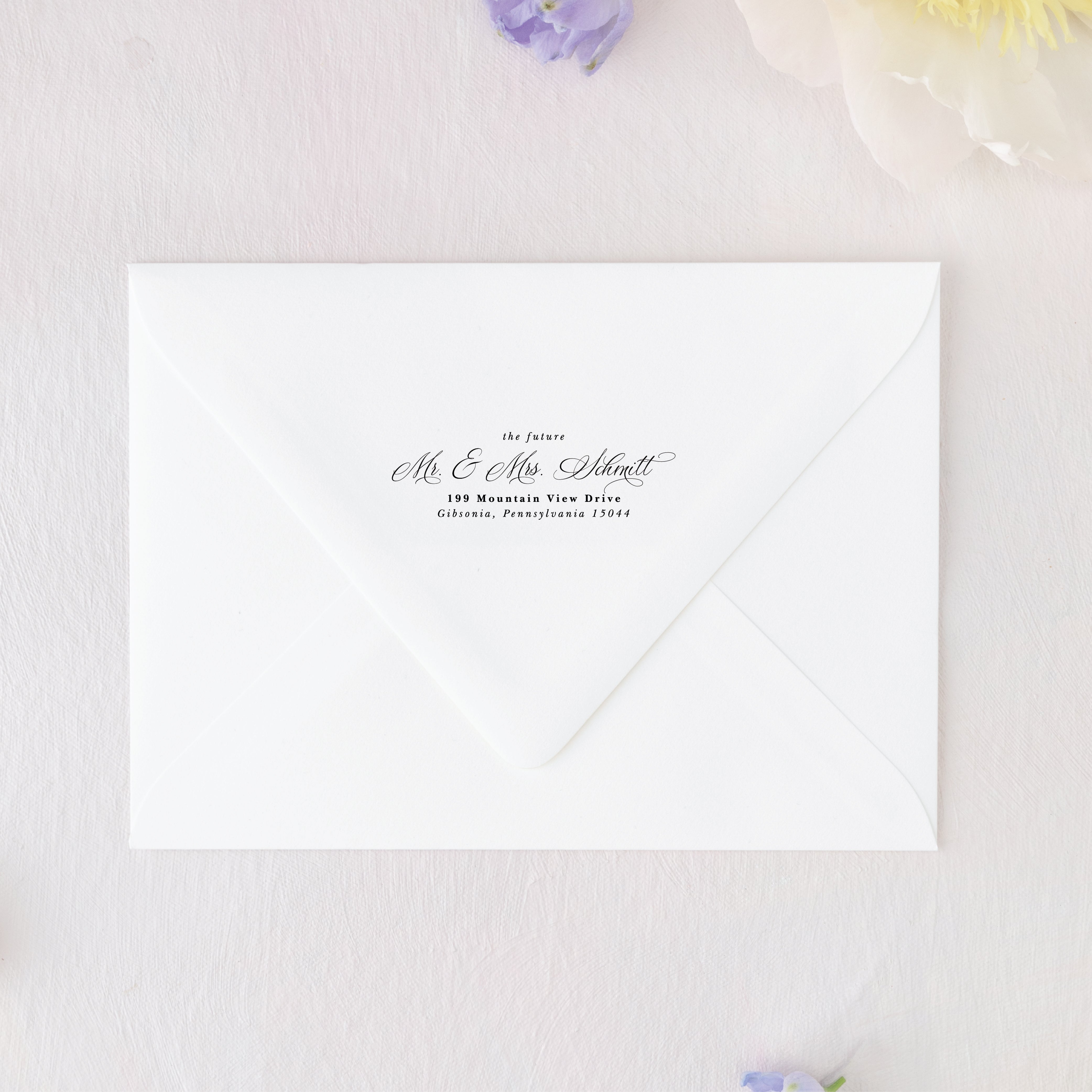 Perfect for wedding invitations, holiday cards or everyday mail, our stamps ensure your return address is always beautifully presented.