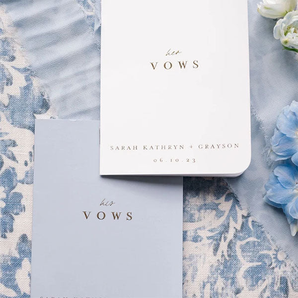Sold as a set of two, our vow books are perfect for both partners to have their own personalized booklet.